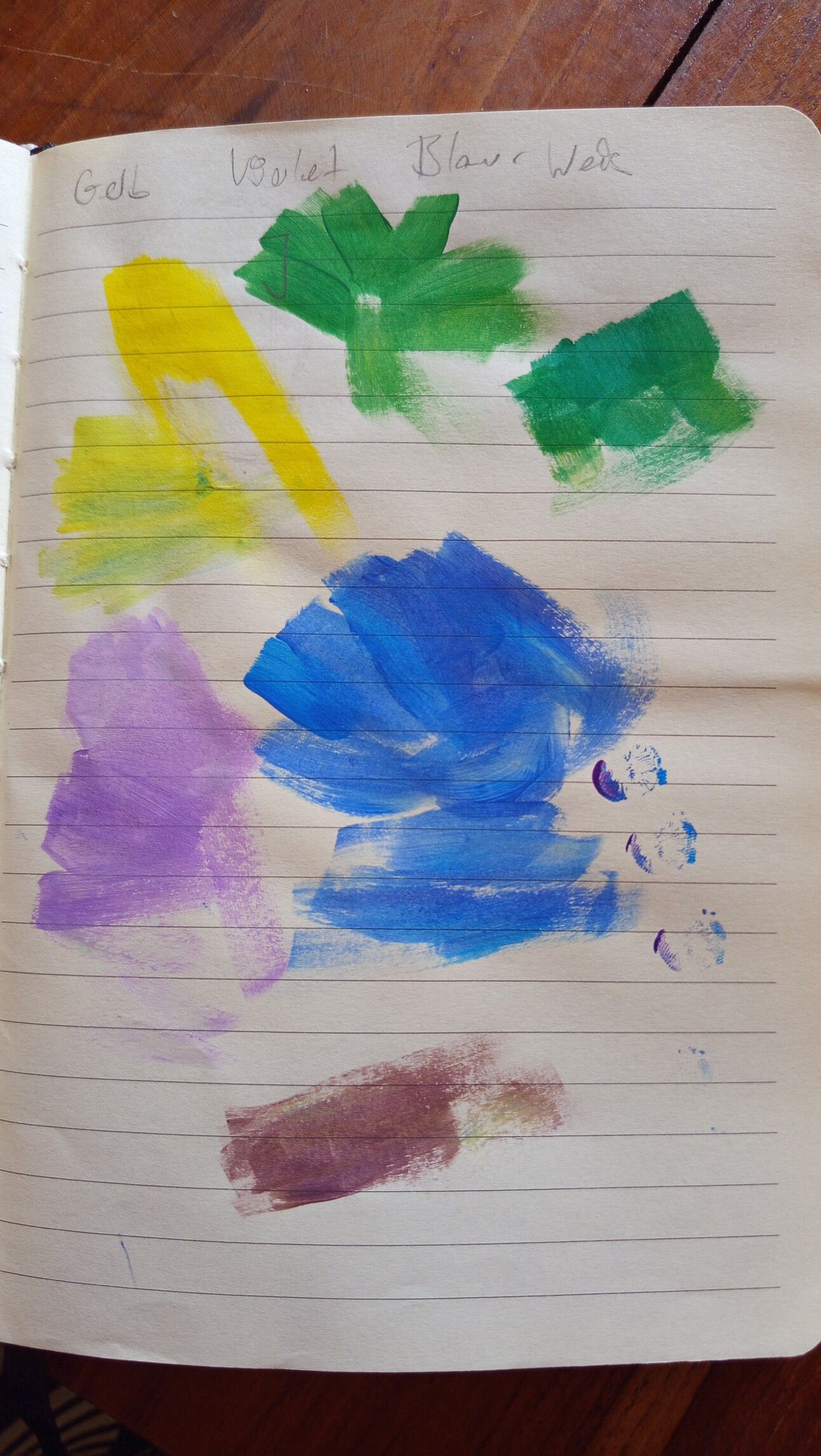 I opened the box containing 12 acrylic painting, pour and mixed randomly some colors on the mixing palette. And made some brush strokes, to see what it looks like.
